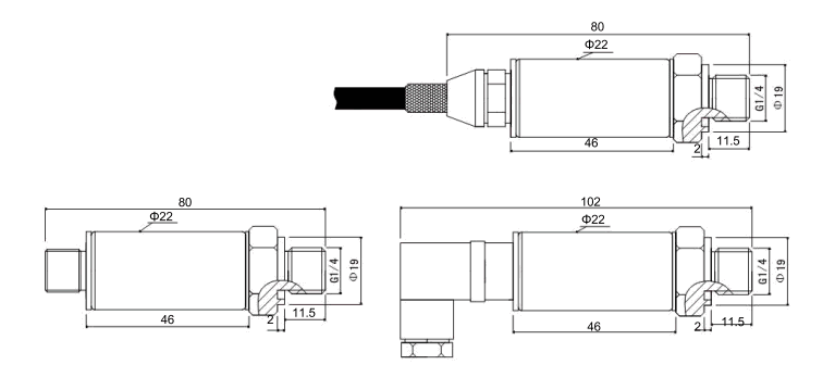 M20×1.5, M12×1, M10×1 ,1/4NPT, G1/2, G1/4 or as custom 或客户定制