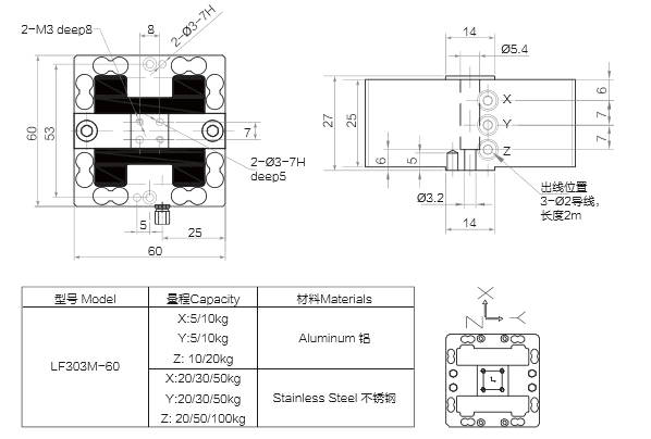 产品详情您的位置:首页 > 供应产品 > 多轴力传感器 二维力传感器 三维力传感器 > 多轴力传感器LF-303M-60