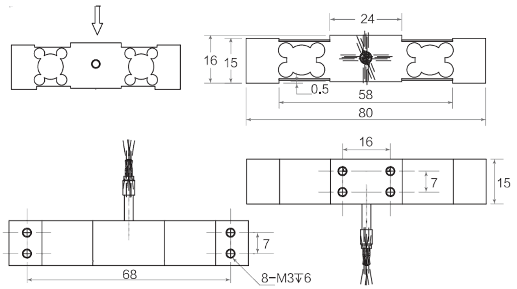 单点平行梁结构,铝合金制称重传感器。精度高、抗偏载能力强,结构简单,容易安装。